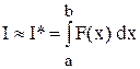 К сожалению, в подавляющем большинстве случаев получить значение интеграла с помощью формулы Ньютона-Лейбница или других аналитических методов не удается. Так, интеграл При разработке численных методов нахождения значения определенных интегралов наиболее распространенным подходом является аппроксимация. Подынтегральную функцию f(x) на отрезке [a, b] приближают некоторой функцией F(x), которая легко интегрируется аналитически. Затем полагают