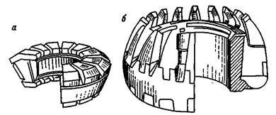 а - уплотнитель превентора типа ПУ1; б - уплотнитель превентора типа ПУ2