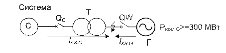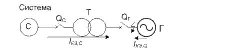 Гашением поля называется процесс, заключающийся в быстром уменьшении потока возбуждения синхронного генератора до величины близкой к нулю. При этом соответственно уменьшается ЭДС генератора. АГП используется: 1) при КЗ внутри машины и на ее выводах для уменьшения размеров повреждения обмоток и активной стали (рис. III.10, а). При этом синхронный генератор должен отключаться также от внешней сети генераторным выключателем Qг. 2) при внешних КЗ, если в цепи генератора установлен выключатель нагрузки (QW), не способный отключить токи КЗ (рис. III.10, б). Поэтому при внешнем КЗ сначала автомат гашения поля отключает обмотку возбуждения генератора, что способствует снижению до нуля тока статора. После этого выключатель нагрузки разрывает обесточенную цепь. Ток КЗ от системы отключается выключателем Qс. Для гашения поля необходимо отключить обмотку ротора синхронного генератора от возбудителя, однако при этом, вследствие большой индуктивности Lf и малой емкости Cf обмотки возбуждения возникнут опасные для ее изоляции перенапряжения
