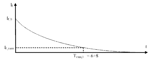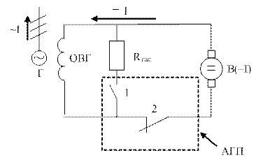 В нормальном режиме работы машины ее обмотка возбуждения подключена к возбудителю через контакты 2. При подаче импульса на отключение АГП сначала замыкаются контакты 1, а затем размыкаются контакты 2, благодаря чему исключается разрыв цепи обмотки возбуждения генератора и устраняется опасность возникновения больших перенапряжений на этой обмотке. Электромагнитная энергия, запасенная в обмотке возбуждения выделяется главным образом в гасительном сопротивлении R1, которое равно 4÷5 кратному сопротивлению обмотки возбуждения. Процесс гашения поля протекает по экспоненциальному закону (рис. III.12), а время гашения 6÷8 с.