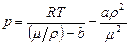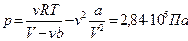 Пример 3.5.4. В очень прочном закрытом стальном баллоне заключена вода, занимающая при комнатной температуре половину объема баллона. Найти давление (в технических атмосферах) и плотность водяных паров при повышении температуры до 4000С. Решение: Из таблицы критических температур возьмем для воды Плотность водяного пара определим, учитывая, что объем одной и той же массы воды в результате ее нагревания увеличился в 2 раза (массу паров, находящихся под водой при комнатной температуре, можно не учитывать). Т.о. Ответ: Пример 3.5.5. Определить давление 280 г азота, находящегося при температуре 270С в сосуде, объем которого равен: 1)1 м3; 2) 0,5 л. Решение: Чтобы решить вопрос о том, каким следует считать данный газ – идеальным или реальным, - найдем молярный объем газа во втором случае Ответ: 1) Пример 3.5.6. Определить массу кислорода в баллоне объемом 10л при температуре 270С и давлениях: 1)1ат; 2) 410 ат.