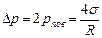 Пример 3.5.7. Какую работу против сил поверхностного натяжения надо совершить, чтобы выдуть мыльный пузырь радиусом 0,05 м? Чему равно избыточное давление внутри пузыря? Решение: Мыльный пузырь представляет собой очень тонкую пленку мыльной воды приблизительно сферической формы. Эта пленка имеет две поверхности – наружную и внутреннюю. Пренебрегая толщиной пленки и считая радиусы обеих сфер одинаковыми, найдем их общую площадь: Для определения избыточного давления внутри пузыря учтем, что каждая из сферических поверхностей пузыря - наружная и внутренняя – производит вследствие своей кривизны давление на воздух внутри пузыря. Это давление, производимое сферой, найдем по формуле Лапласа, считая Ответ: