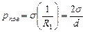 где Формула Лапласа в случае сферической поверхности Высота поднятия жидкости в капилляре радиуса где Высота поднятия жидкости в капилляре радиуса Высота подъема жидкости между двумя близкими и параллельным друг другу плоскостями где Давление насыщающего пара над вогнутой сферической поверхностью жидкости меньше, а над выпуклой - больше, чем над плоской поверхностью, на величину где Пример 3.5.1. В баллоне емкостью Решение: 1) 2) Пример 3.5.2. Найти добавочное давление внутри мыльного пузыря диаметром 10 см. Какую работу нужно совершить, чтобы выдуть этот пузырь?