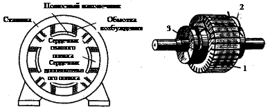 Рис. 75. Конструкция станины и якоря машины постоянного тока