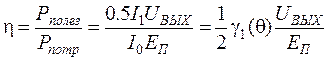Функция γ1(θ) принимает максимального значения равное двум при θ = 0, это говорит о том, что при θ → 0, КПД нелинейного усилителя может быть близок к единице. Но в таком режиме полезная мощность на выходе стремится к нулю. Если амплитуда импульсов коллекторного тока постоянна