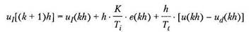 После ограничения выходного сигнала интегральная часть регулятора сбрасывается. Ниже приведен пример программы ПИ-регулятора с защитой от насыщения — до тех пор, пока управляющий сигнал остается в установленных пределах, последний оператор в тексте программы не влияет на интегральную часть регулятора. Для предотвращения насыщения у ПИД-регулятора описанный метод следует несколько видоизменить. Интегральная часть обновляется с помощью значения es. = и — uj, которое представляет собой разность между реальным текущим выходом исполнительного механизма и и расчетным выходом регулятора и. Выход исполнительного механизма либо измеряется непосредственно, если это возможно, либо вычисляется с помощью модели. Погрешность es равна нулю, если исполнительный механизм обеспечивает требуемый управляющий сигнал и насыщения нет. Для сброса интегральной части сигнал es умножается на множитель 1/Т, где Tt представляет собой коэффициент, который называется постоянной времени слежения. В алгоритме ПИ-регулятора, приведенном выше, эта постоянная времени равна h, т. е. обновление выходной величины регулятора происходит уже к моменту следующей выборки. Если алгоритм регулятора содержит дифференциальную часть, целесообразно обновлять интеграл гораздо реже. Соответствующее значение для постоянной времени слежения Tt равно времени интегрирования 71,-. При этом выходная величина ПИ регулятора равна