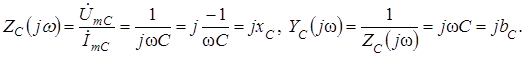 Если подставить комплексные изображения (2.22) в выражение (1.11) и произвести преобразования, как и для индуктивности, то получатся выражения комплексных сопротивления ZC (j ω) и проводимости YC (j ω) емкости.