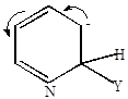 р- Основность пиридина Меньшая основность пиридина по сравнению с (СН3)N объясняется различием в гибридизации: в (СН3)N азот находится в состоянии sp3-гибридизации, а в пиридине – в sp2-гибридизации (Веселовская, 1982г). Доля s-электронов на орбите, занятой неподеленной парой электронов, больше при sp2-гибридизации, чем при sp3-гибридизации, а s-электронное облако менее вытянуто и прочнее удерживается ядром (при sp3-гибридизации неподеленная пара состоит из 1 s-электрона и 1 sp3-гибридного электрона, при sp2-гибридизации – из 1 s-электрона и 1 sp2-гибридного электрона, один р-электрон расположен перпендикулярно плоскости кольца и участвует в образовании ароматического секстета). Например,