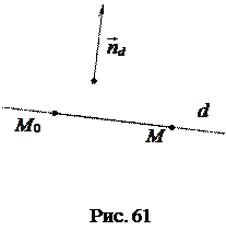 Ненулевой вектор называется перпендикулярным данной прямой, если он ортогонален любому направляющему вектору этой прямой. Вектор, перпендикулярный прямой, называется вектором нормали этой прямой или ее нормальным вектором. Для каждой прямой на плоскости существует бесконечное множество векторов нормали. Любые два из них коллинеарны (рис. 60). Вектор нормали прямой