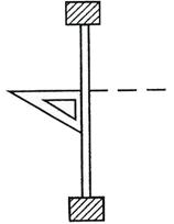 В каждом из вариантов изучаются расположенные напротив здания и другие сооружения, в которых может быть установлен лазерный регистратор. Анализ возможностей злоумышленников начинается с пространственно-азимутальных измерений с учётом требований геометрических законов оптики. Для проведения азимутальных измерений используется различные приборы, такие, в частности, как теодолиты, буссоли и даже лазерные дальномеры. При отсутствии специальных приборов пространственно-азимутальные исследования можно приближенно проводить с помощью обычного прямоугольного треугольника. Треугольник приставляется к окну одним катетом, а другой катет визируется как перпендикулярная направляющая на здания, расположенные напротив защищаемого помещения (рис. 9.6).