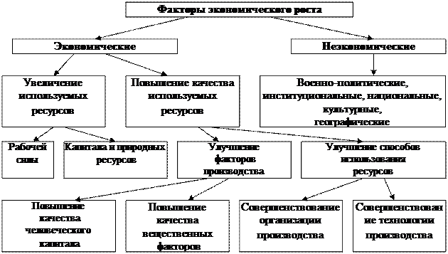 Страна, обеспечивающая экономический рост, развивается тем успешнее, чем выше его темпы и качество. Вместе с тем количественные параметры экономического роста нельзя рассматривать как самоцель. Это средство достижения разнообразных целей, которые государство ставит между собой. При этом в качестве конечной цели экономического роста всегда провозглашается повышение благосостояния населения. Экономический рост определяется множеством факторов. Важнейшие из них отражены на схеме 52. Схема 52.