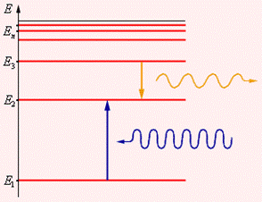 2. Второй постулат Бора (правило частот): при переходе электрона с одной стационарной орбиты на другую излучается (поглощается) один фотон с энергией, равной разности энергий соответствующих стационарных состояний до и после излучения