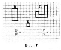 Рисунок 4 Натуральные числа используют не только для пересчета элементов конечных множеств, но и для измерения величин: длин отрезков, площадей фигур, масс тел, стоимости товара и др., то есть для сравнения их с некоторой единицей (метром, килограммом и т. д.) и выражения результата измерения числом. Рассматривая величины, дети знакомятся с новой трактовкой числа. Раскрыта его двойственная природа: с одной стороны, число – это результат счета предметов в совокупности, с другой – результат измерения величин. На предметно–практическом уровне обращается внимание на аналогию свойств множеств и величин. Задание: «Измерь величину А меркой Е» (рисунок 5).