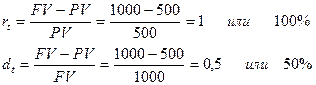 Логика построения основных алгоритмов по решению инвестиционных задач достаточно проста и основана на следующей идее. Простейшим видом финансовой сделки является однократное предоставление в долг некоторой суммы РV с условием, что через некоторое время t будет возвращена большая сумма FV. Как известно, результативность подобной сделки может быть охарактеризована двояко: либо с помощью абсолютного показателя - прироста (FV – PV), либо путем расчета некоторого относительного показателя. Абсолютные показатели чаще всего не подходят для подобной оценки ввиду их несопоставимости в пространственно-временном аспекте. Поэтому пользуются специальным коэффициентом - ставкой. Этот показатель рассчитывается как отношение приращения исходной суммы к базовой величине, и качестве которой, очевидно, можно взять либо PV, либо FV. Таким образом, ставка рассчитывается по одной из двух формул: