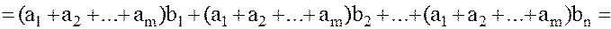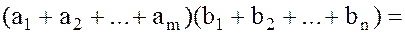 Следовательно, в силу принципа математической индукции, равенство (2) справедливо для Теорема 2. (Обобщенная дистрибутивность) В любом кольце К справедливо обычное правило умножения суммы на сумму (но без изменения порядка множителей):