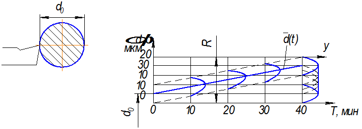 где dr – действительный размер (измеренный); d – номинальный размер. Погрешности изготовления и измерения для удобства анализа и устранения принято подразделять на систематические, случайные. Пример – обработка валиков на настроенном станке.
