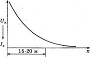Рис. 3 - Гиперболический закон распределения потенциала на основании земли в зависимости от расстояния до заземления