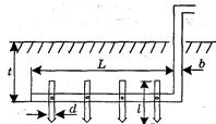 где Затем рассчитывают сопротивление растеканию тока горизонтального проводника, соединяющего одиночные электроды. Если в качестве соединяющего проводника используется стальная полоса шириной b и длиной L (рис. 5), то сопротивление его растеканию тока рассчитывается по формуле
