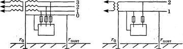 Для того, чтобы обеспечить достаточно безопасное значение напряжения прикосновения ( Значение сопротивления заземления не должно превышать в электроустановках до 1000 В 4 Ом во всех случаях и 10 Ом при суммарной мощности источников напряжения сети до 100 кВхА. Чтобы получить заземление, обеспечивающее безопасность, применяют сложные групповые заземлители.