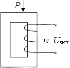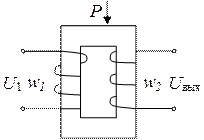 Принцип действия основан на изменении магнитной проницаемости m (или индукции В) ферромагнитных тел в зависимости от возникающих в них механических напряжений s, обусловленных воздействием на ферромагнитные тела механических сил Р. Существует и обратное явление – магнитострикция, когда внешнее магнитное поле вызывает механические деформации ферромагнитного тела. В общем случае магнитоупругий эффект имеет нелинейный характер, зависит от значения напряженности приложенного поля Н. Происходящее под действием механической нагрузки одновременно изменение магнитной проницаемости m и линейных размеров сердечника можно использовать для измерения давлений, усилий моментов деформаций. При всем многообразии конструктивных решений магнитоупругие преобразователи по принципу действия делятся на две группы: дроссельного и трансформаторного типа. В первом варианте изменение m сердечника приводит к изменению полного электрического сопротивления Z. Во втором – используется взаимная индукция М, поэтому преобразователи трансформаторного типа являются по существу трансформаторами с переменным коэффициентом трансформации. Достоинства: - простая конструкция; - низкая стоимость; возможность измерения больших усилий. Недостатки: - необходимость стабилизации питающего напряжения; - высокая температурная нестабильность; питание от источника переменного тока.