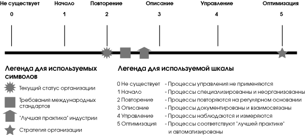 Беря за основу шкалу моделей зрелости (Рис.1), разработанную для каждого из ИТ-процесса CobiT, руководитель может выяснить следующие сведения: