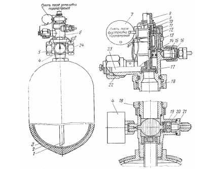 Системы пожаротушения бывают централизованными и автономными. Автономные системы применяются для тушения пожара внутри двигателей и отсеков ВСУ, централизованные - для тушения в двигательных отсеках многодвигательных самолетов, т.е. в нескольких местах. Для этого имеется несколько очередей огнетушителей. Первая очередь приводится в действие автоматически или вручную, а последующие вручную в случае, если пожар не удалось погасить с первой попытки. В каждой очереди должно быть такое количество огнегасящего состава, чтобы создать необходимую концентрацию не более чем за 3с. и сохранять её не менее2с. Противопожарная система включает в себя следующие агрегаты и устройства ¾ огнетушители (пожарные баллоны); ¾ систему сигнализации о пожаре; ¾ распределительные устройства ¾ распылительные коллекторы; ¾ трубопроводы. Стационарные огнетушители имеют баллоны шаровой (УБШ) или цилиндрической формы (УБЦ).