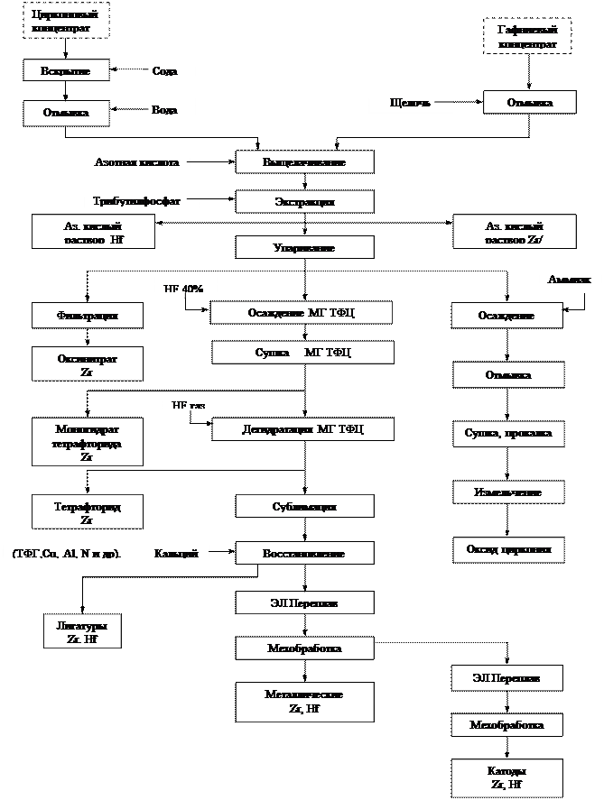 План лекции №9. Технология циркония и гафния: методы разделение циркония и гафния. 1. Дробная кристаллизация комплексных фторидов. 2. Ректификация. 3. Экстракция: 3.1. Использование ТБФ: 3.2. Использование МИБК. 4. Субхлоридный способ.