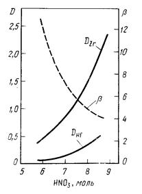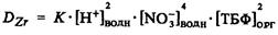 ТБФ – бутиловый эфир фосфорной кислоты, экстрагирует цирконий и гафний из кислых растворов основных хлоридов или нитратов этих элементов. Наиболее удобны для разделения растворы нитратов, содержащие свободную азотную кислоту. Экстракция протекает с образованием сольвата по реакции:
