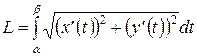 Пусть уравнение кривой задано в параметрической форме уравнениями: , , , где – непрерывные функции с непрерывными производными, тогда длина кривой находится по формуле: