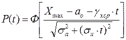 В этой модели нормальному распределению подчиняются начальное значение параметра Оценивается именно скорость процесса, потому что она зависит от большого числа факторов, характеризующих режимы и условия работы изделия и не связанных с длительностью его эксплуатации. Если рассеивание данной величины является результатом суммирования от воздействия ряда независимых случайных факторов, сравнимых по своему значению, то согласно центральной предельной теореме теории вероятностей результирующее распределение будет приближаться к нормальному. Полученные зависимости для Вероятность отказа