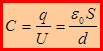На практике существует потребность в устройствах, которые при небольшом относительно окружающих тел потенциале накапливали бы на себе («конденсировали») заметные по величине заряды. Такие устройства называют конденсаторами. Конденсаторы делают в виде двух проводников, помещенных близко друг к другу. Образующий конденсатор проводники называют их обкладками. Чтобы внешние тела не оказывали влияния на емкость конденсатора, обкладками придают такую форму и так располагают друг относительно друга, чтобы поле, создаваемое накапливаемыми на них зарядами, было сосредоточено внутри конденсатора. Этому удовлетворяют две пластинки, или два цилиндра, или две сферические поверхности, расположенные близко друг к другу (соответственно плоские, цилиндрические, сферические конденсаторы). Ранее, используя терему Остроградского-Гаусса, были получены выражения, которые можно использовать для определения модуля напряженности электрического поля для вакуумного пространства между обкладками соответствующих конденсаторов: Основной характеристикой конденсатора является его емкость, под которой понимают величину, пропорциональную заряду q и обратно пропорциональную напряжению между обкладками: