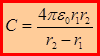 Величина емкости определяется геометрией конденсатора, а также свойствами среды, заполняющей пространство между конденсаторами. Найдем формулу для емкости плоского конденсатора, между обкладками которого находится вакуум. Напряженность между обкладками конденсатора: Для цилиндрического конденсатора (r 1 и r 2 – радиусы внутренней и внешней обкладок конденсатора): Для сферического конденсатора (r 1 и r 2 – радиусы внутренней и внешней обкладок):