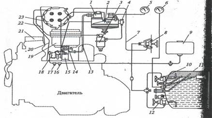 Рис. 36 Схема газобаллонной установки для работы на СНГ грузов автомобилей семейства ЗИЛ и ГАЗ