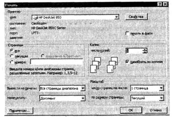 В случае, когда пользователю необходимо отпечатать одну страницу, в группе «Страницы» (Page Range) переключатель устанавливается в положение «Текущая» (Current Page). Для печати нескольких страниц переключатель устанавливается в положение «Номера» (Pages), а в цифровом поле набираются номера или диапазон страниц.