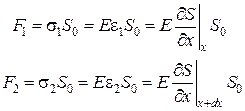 и результирующая F 1, F 2 сил, действующая на элемент объема равна