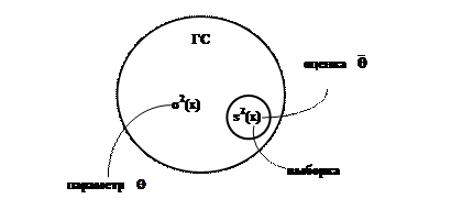 Оценивание параметров. Основные задачи статистики Лекция № 9 Назначение статистических методов состоит в том, чтобы по выборкам ограниченного объема делать обоснованные выводы о свойствах генеральных совокупностей, из которых эти выборки были извле чены. При этом возникает две основные задачи: Первая задача заключается в получении по выборочным данным оценок параметров генеральных совокупностей посредством каких-либо подходящих функций от элементов выборок. Это т.н. параметризация. Параметрами (статистическими характеристиками) называются все подлежащие определению величины генеральной совокупности. Примеры параметров: вероятности событий, математические ожидания, дисперсии. Оценка – это найденное по выборочным данным значение параметра. Статистические характеристики (параметры) вообще принято обозначать буквой Термин «оценка» используется вследствие того, что из-за случайного характера выборочных исследований в принципе невозможно гарантировать не выход ошибки параметризации из любых наперед заданных пределов. Поэтому предпочитают говорить не о приближенном значении параметра, а о получении наилучшей среди возможных оцен- ке его величины. На рисунке 9.1 параметром Рисунок 9.1 – Параметр и его оценка