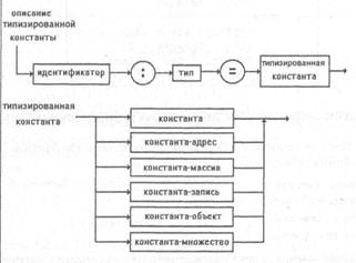 Оскільки типізована константа фактично являє собою ініціалізуєму змінну, то вона не може використовуватися в оголошеннях інших констант або типів. Типізовані константи стандартних типів (див. таблицю): Типізовані константи структурованих типів Turbo Pascal підтримує роботу з типізованими константами наступних структурованих типів: • типу "масив" (array); • типу "множина" (set); • типу "запис" (record); • об'єктного типу (object). В описі константи структурованого типу вказуються значення кожного її компонента відповідно до певних синтаксичних правил. Опис типів