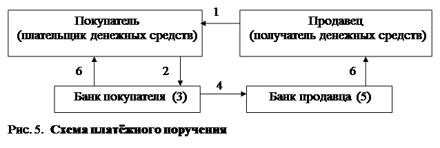 3) Платёжное поручение – это поручение хозяйственного субъекта о перечислении определённой суммы со своего счёта на счёт другого хозяйствующего субъекта. Схема платёжного поручения (рис. 5) осуществляется согласно банковским правилам.