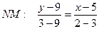 Задача 3.1. Составить уравнение прямой, проходящей через точки Решение. Для решения задачи следует воспользоваться уравнением (3.3). При этом безразлично, какую из точек считать первой, а какую – второй. Покажем это, считая вначале первой точку М, а затем точку N.