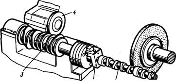 Профильное шлифование ведут методом копирования или огибания (рисунок 1). При методе копирования профиль шлифуемой поверхности детали полностью совпадает с профилем шлифовального круга, который специально профилируют при правке. При методе огибания профили детали и круга не совпадают, а сложный контур на детали образуется как огибающая различных положений шлифовального круга простой формы. Более распространен метод копирования. Он применяется на различных типах шлифовальных станков и обеспечивает высокую производительность. Круги правят фасонными алмазными роликами и копирными устройствами, расположенными на бабке шлифовального круга. Операция шлифования кулачков распределительного вала (рис. 2) является типовым примером огибания детали по кругу. Заданный профиль кулачка образуется при совокупном вращении и качании распределительного вала /, который установлен в центрах круглошлифовального станка с качающимся столом. Копиры 3, установленные на передней бабке, поочередно контактируют с копирным роликом 4 и при вращении шпинделя передней бабки осуществляется качательное движение стола по программе, задаваемой профилем копира. Хомутик 2 обеспечивает согласование углового положения копиров и кулачков. Профилешлифовальные станки, работающие по методу огибания, основаны на принципе копирования чертежа или шаблона и бывают механического или оптического действия. Механический станок (рис. 3, а) с пантографом имеет шаблон 1 и щуп 2. Поступательное перемещение последнего передается на шлифовальный круг 5 через пантограф 4 (с уменьшением),