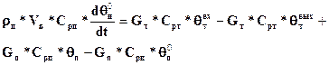 Уравнение статики. Gт Cрт qтвх - Gт Cрт qтвых = Gп Cpп qn0 - Gп Cpп qn. (17) Обозначения: - qт вх, qт вых, qn 0 ,qn – температуры потоков теплоносителя и питания на входе и выходе из теплообменника; - Vn - объем потока питания в трубах теплообменника; - Cpп, Срт - удельные теплоемкости потоков питания и теплоносителя; - Gт, Gп - массовые расходы теплоносителя и питания, кг/ч.