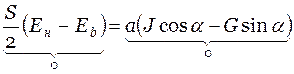 Возвышение наружного рельса в кривой устраивается с целью: a) обеспечения одинакового срока службы рельсовых нитей, т.е. равномерного износа нитей; b) снижения бокового давления на рельс наружной нити от действия центробежной силы; c) обеспечения комфортабельности езды пассажиров за счёт снижения чрезмерного воздействия непогашенного центробежного ускорения. На рис. 5 изображено положение экипажа на кривой, имеющей возвышение наружного рельса – h. Обозначим: S1 – расстояние между осями рельсов, равное 1,6 м, α– угол наклона полотна пути, тогда tgα = h/S ≈ sinα, а – расстояние от поверхности катания рельсов до центра тяжести экипажа. G = mg – вес экипажа, J = mv 2/2 – центробежная сила. Разложим внешние силы G и J на взаимно перпендикулярные составляющие по правилу параллелограмма. Обозначим: Eв, Eн – вертикальные реакции рельса, Тв, Тн – горизонтальная реакция рельса. 1.Опрделим возвышение наружного рельса из условия равенства давлений на обе рельсовые нити. Условие равенства давлений на обе рельсовые нити: Eв = Eн (1) Условие устойчивости экипажа против опркидывания: Σ M 0 = 0 (2) Решая совместно уравнение (1) и (2) получим: Σ M 0 = Eн‧S/2 - J‧ cosα ‧ a + G‧ sinα ‧ a – Eв‧S/2 = 0