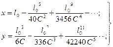 Для нахождения ординат y задают длины переходной кривой до значения l0. Если ограничиться первым членом в каждом ряду, заменив l0 его значением через х получим уравнение кубической параболы