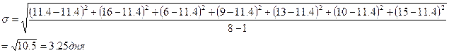 где t — продолжительность между одинаковыми доставками, в днях, σ — среднее квадратическое отклонение, которое определяется по формулам;