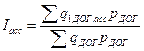 где РДог — договорные цены, зависящие от качества продукции, т.е. как отношение средней договорной цены при фактическом соотношении сортов к средней договорной цене при плановом соотношении сортов. Индекс динамики качества поставленной продукции можно записать так: