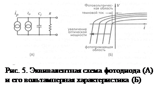 где io - обратный темновой ток, возникающий из-за тепловой генерации пар электрон-дырка, is - ток, соответствующий детектируемому оптическому сигналу, m - постоянная Больцмана, а Т - абсолютная температура.