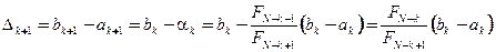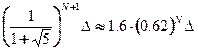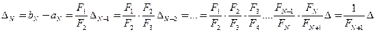 Числа Фибоначчи: Метод Фибоначчи, как и метод половинного деления, состоит в построении множества (N -1) вложенных отрезков локализации, пробные точки делят предыдущий отрезок в отношении, которое определяется числами Фибоначчи: