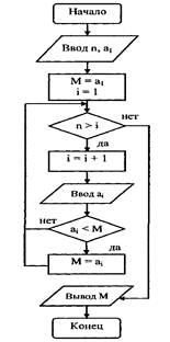 Рис. 1. Блок-схема алгоритма нахождения минимума в последовательности чисел