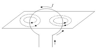 Свойства силовых линий: а) Силовые линии замкнутые. Направление силовых линий определяется правилом буравчика. Если при ввинчивании поступательное движение буравчика совпадает с направлением тока, то направление движения рукоятки показывает направление силовых линий (на рис.150 силовые линии - пунктирные).