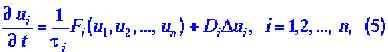 где Уравнения (5) называют также уравнениями реакции с диффузией, поскольку они, в частности, описывают изменения концентрации веществ во времени и пространстве с учетом их диффузии и химических реакций. Принимают, что процессы, описываемые уравнениями (5), протекают в ограниченном пространстве - либо одномерном (реакции в трубке длиной L), либо двухмерном (реакции в пленке шириной порядка L), либо в трехмерном (реакции в сосуде, размеры которого порядка L). В частном случае, когда все динамические переменные распределены в пространстве равномерно, мы имеем систему обыкновенных дифференциальных уравнений: